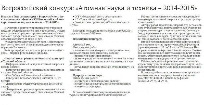 подробно с положением о конкурсе можно ознакомиться по адресу: tomsk.myatom.ru/projects2/2014/18–11-1