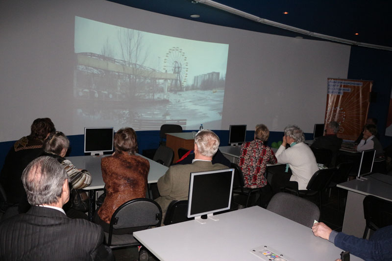 Перед вступительным словом руководителя ИЦАЭ Томска Елены Рязановой участникам встречи была продемонстрирована музыкальная слайд-презентация «О Чернобыле и его героях».