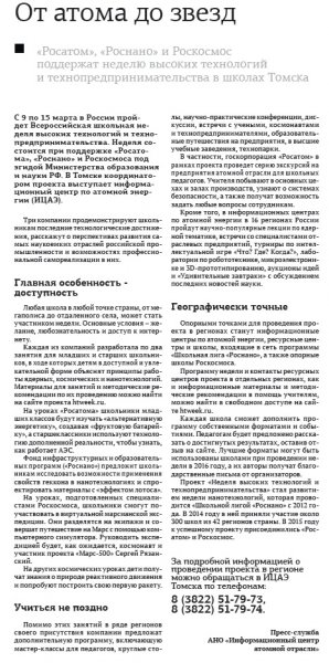 о проведении проекта в регионе можно обращаться в ИЦАЭ Томска по телефонам: